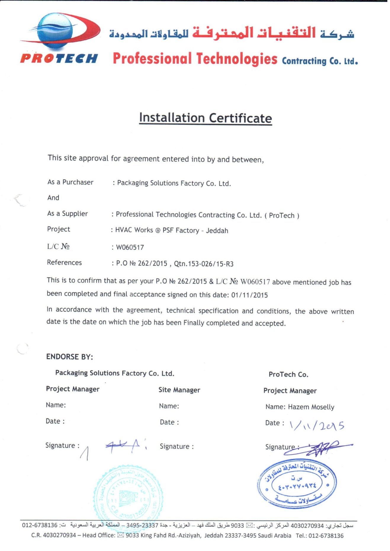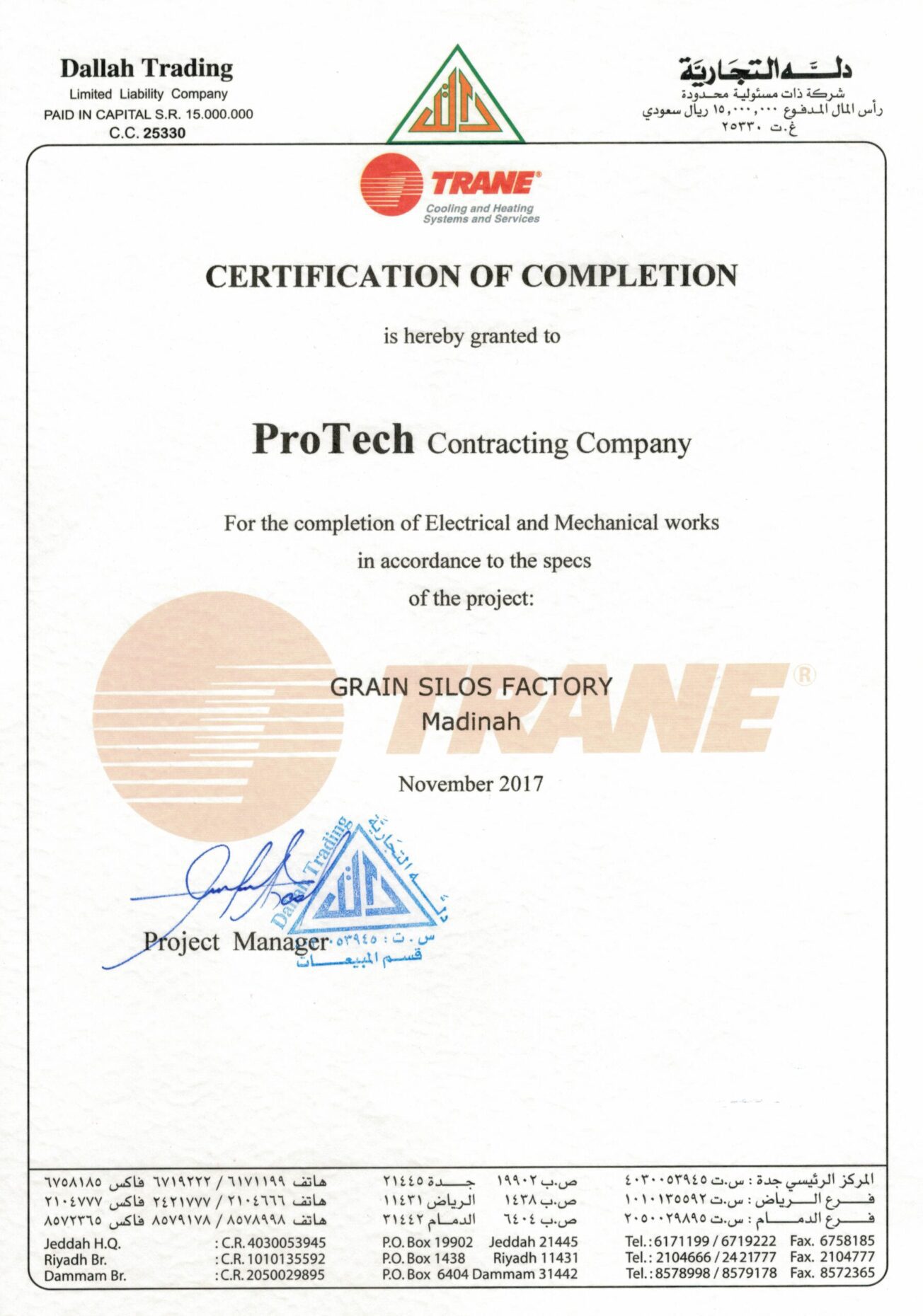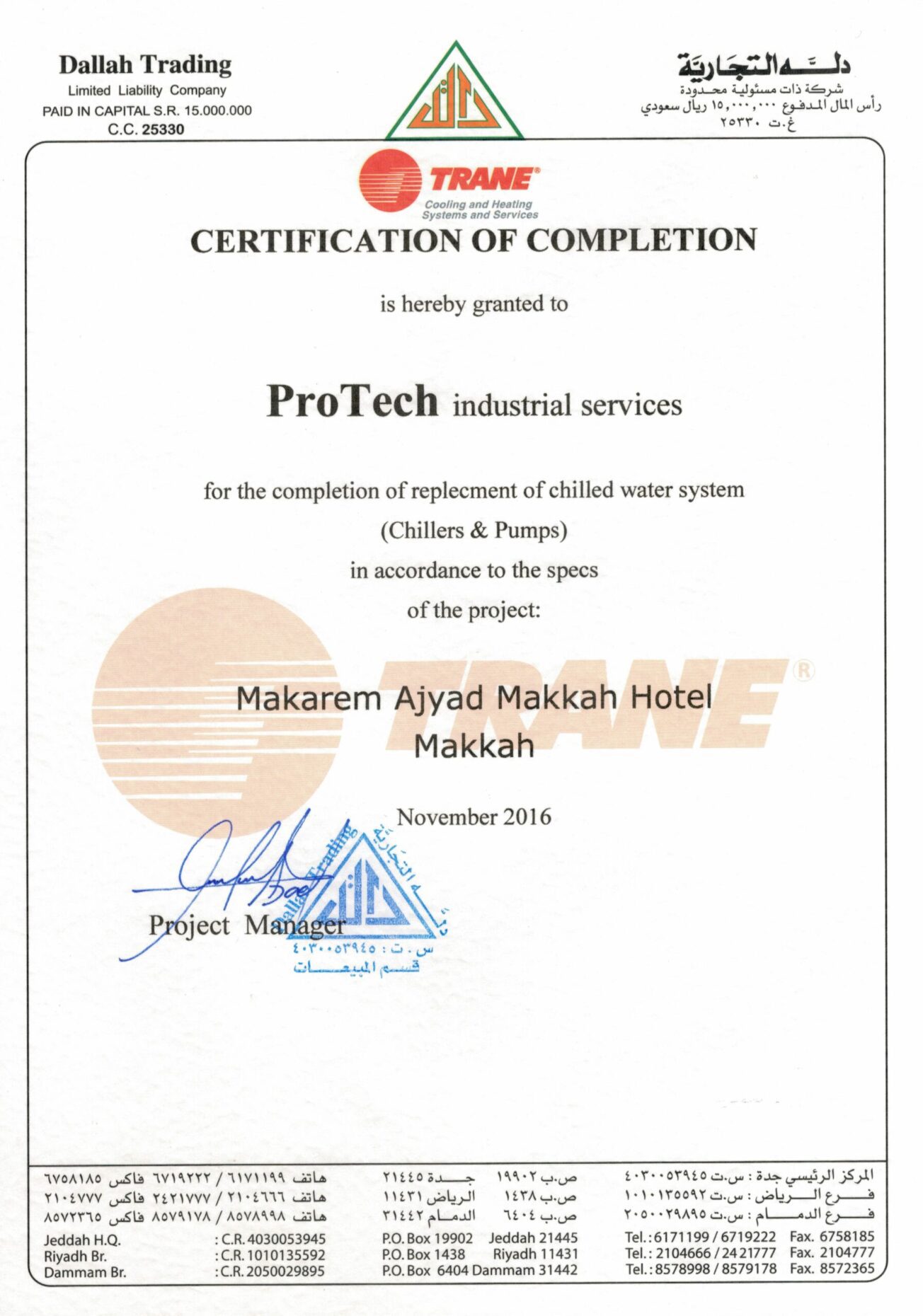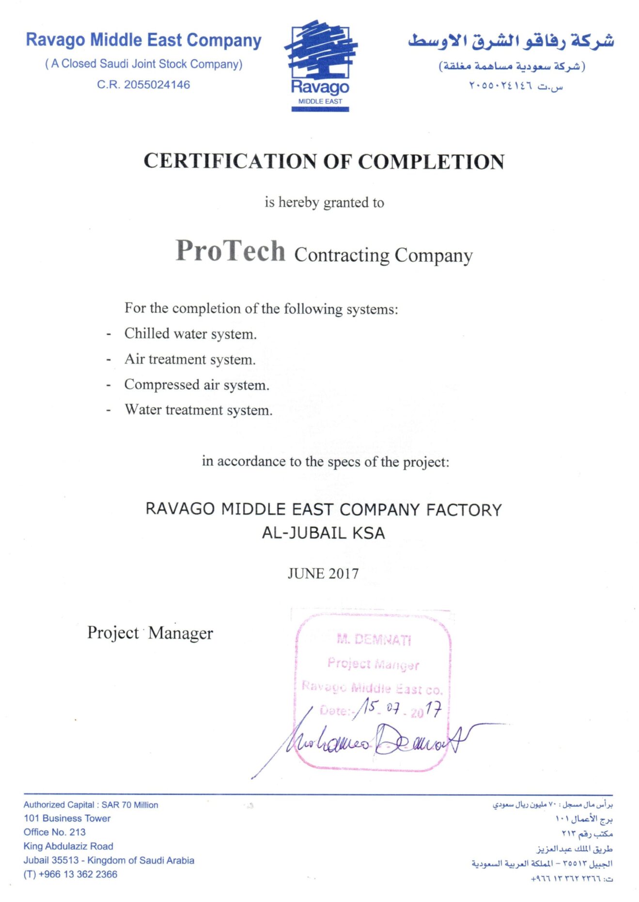 At Saudi ProTech, we take pride in delivering high-quality MEP solutions that meet industry standards and client expectations. Our completion certificates reflect our commitment to excellence, safety, and compliance across industrial, commercial, and residential projects in Saudi Arabia. Explore our successfully completed projects and see why we are a trusted name in MEP contracting.
