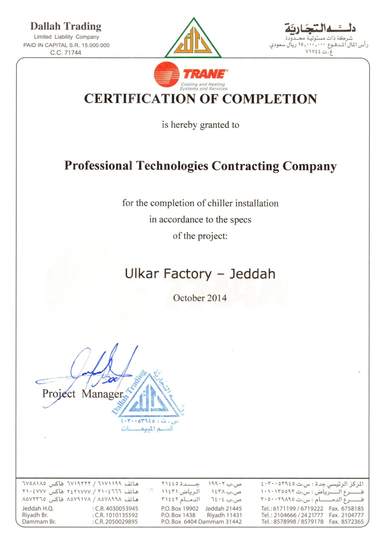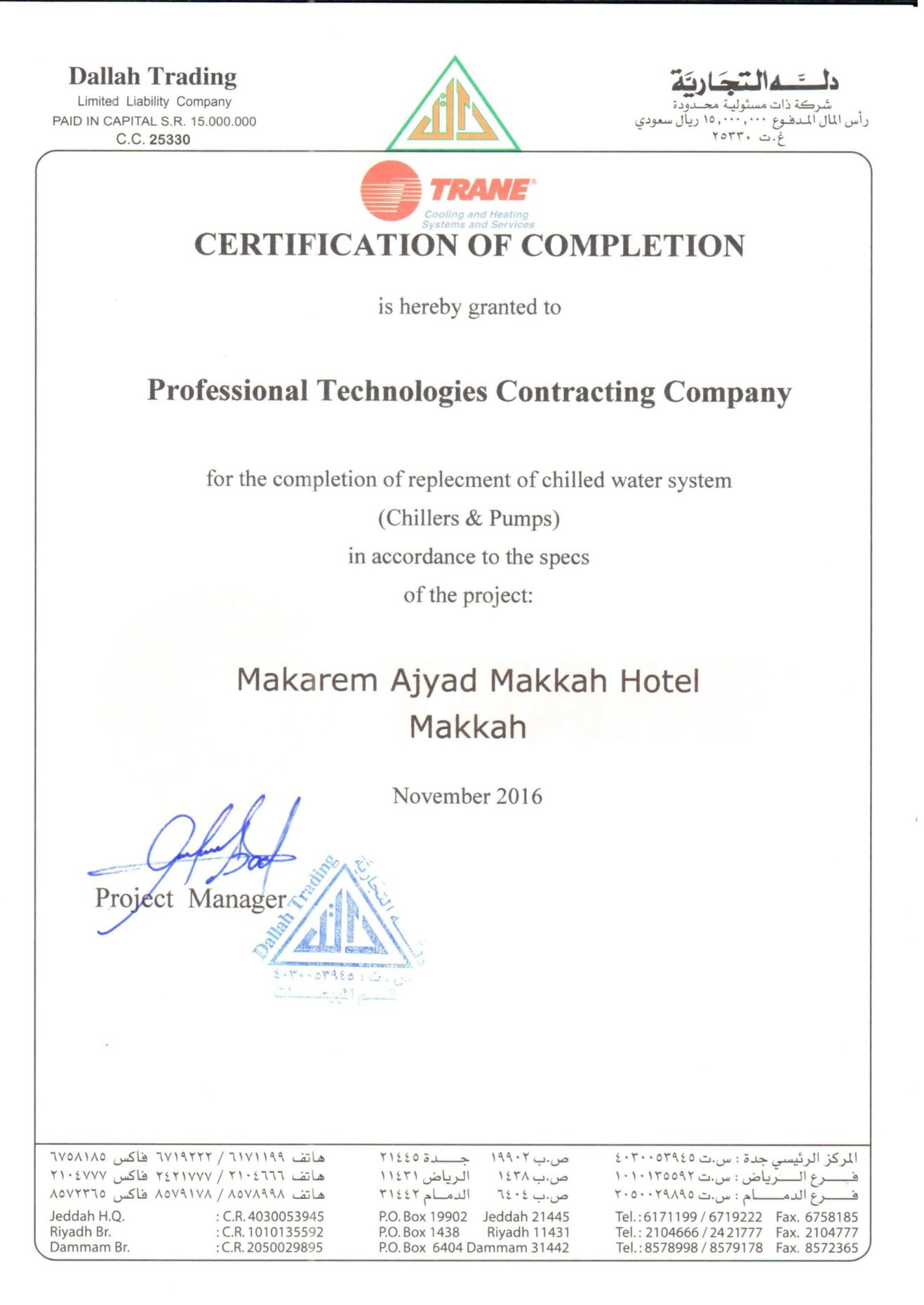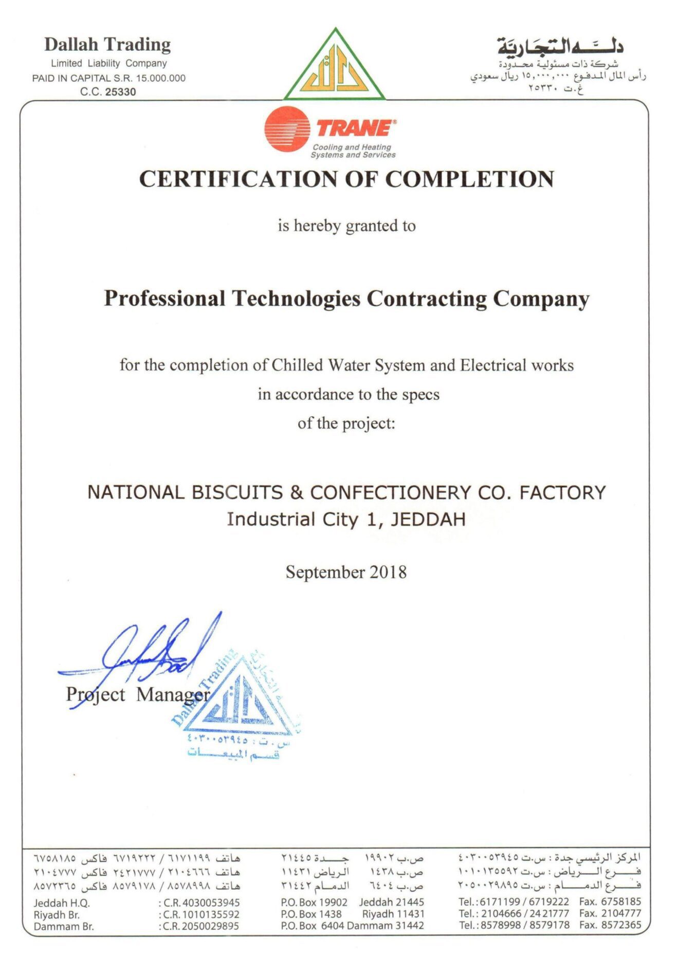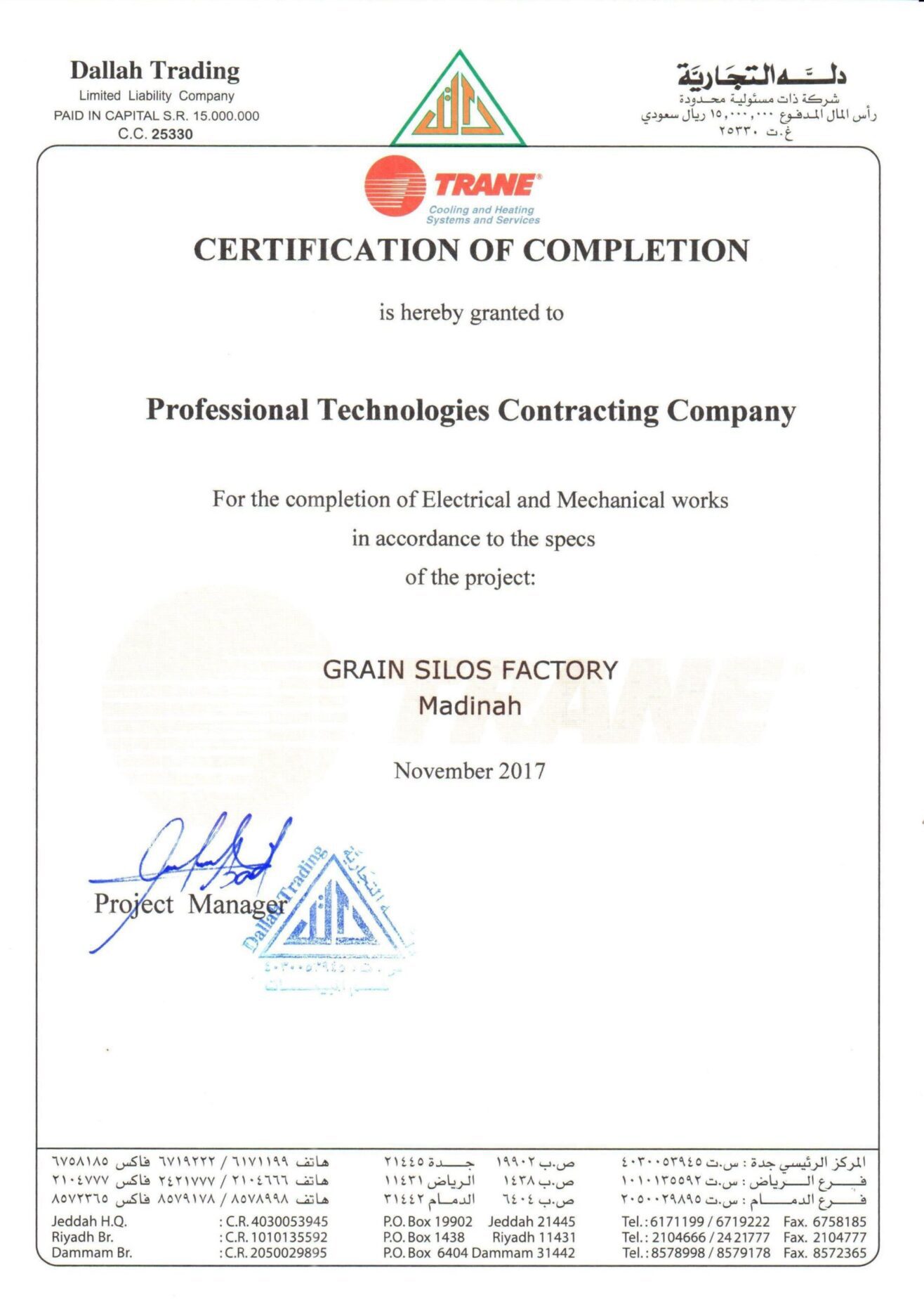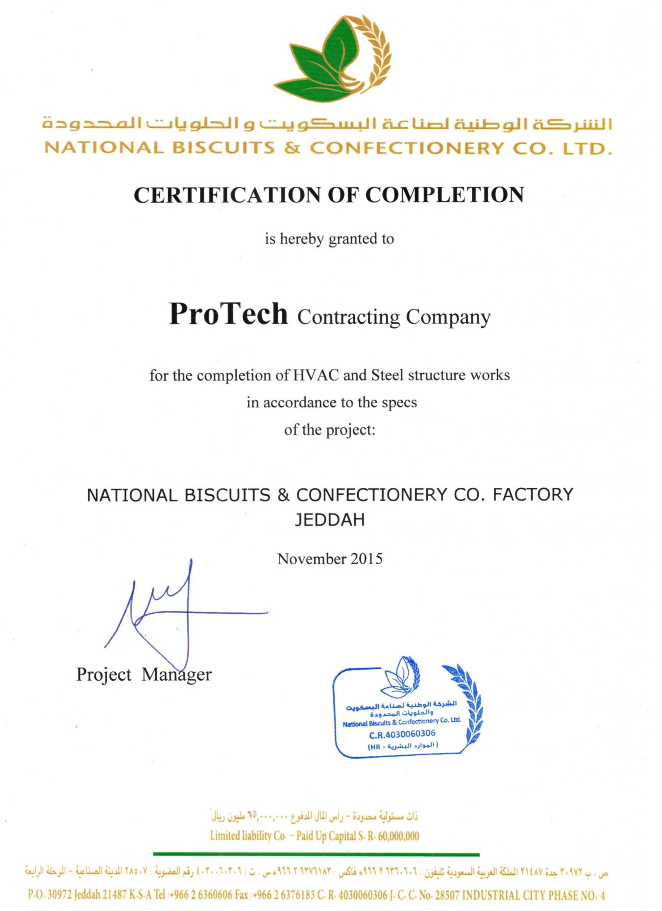 At Saudi ProTech, we take pride in delivering high-quality MEP solutions that meet industry standards and client expectations. Our completion certificates reflect our commitment to excellence, safety, and compliance across industrial, commercial, and residential projects in Saudi Arabia. Explore our successfully completed projects and see why we are a trusted name in MEP contracting.
